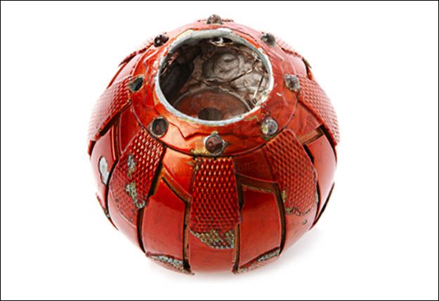 Offered here is the Screen Used Green Goblin bomb from the first SPIDER MAN film. Appears to have had a function, or been mounted on a rig at one time. Some cracking and peeling of the paint as you can see.