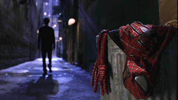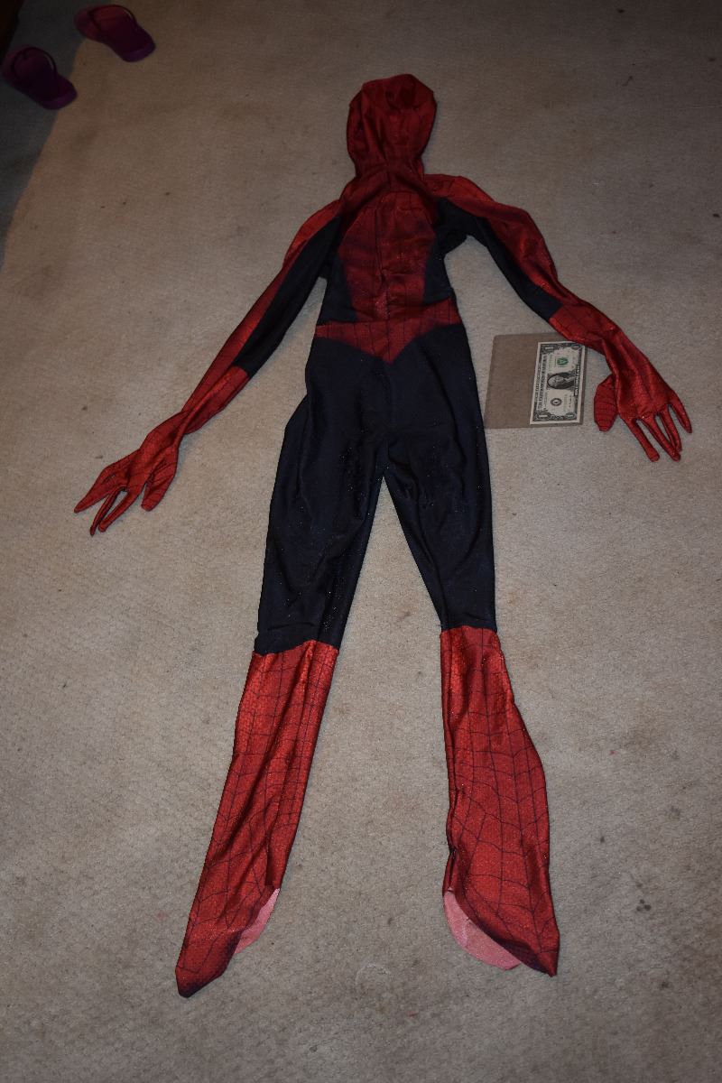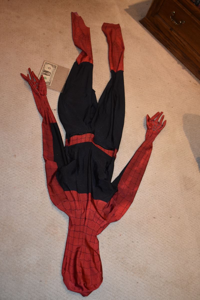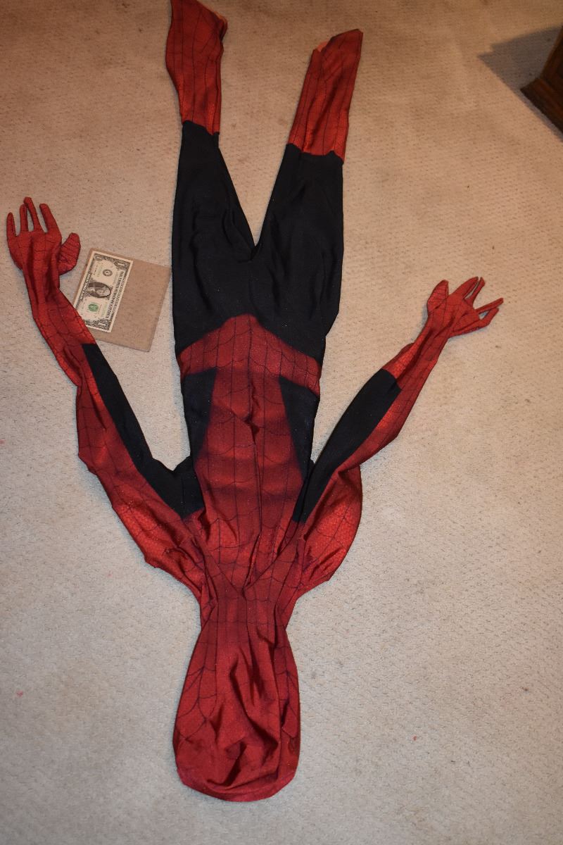 This is a complete SEWN HERO suit from SPIDER-MAN 2. It was used by producers as a template to make the suits for SPIDER-MAN 3.