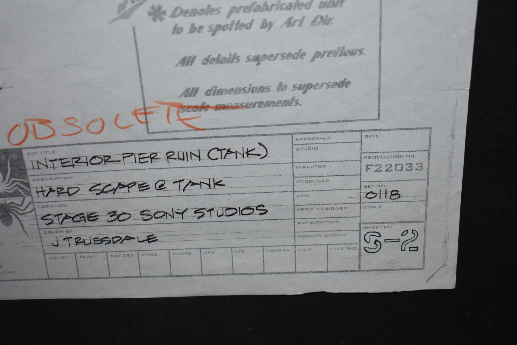 This is one of several "Original Productin Used" Blue Prints of Dock Ock's ocean front lab in SPIDER-MAN 2! From the office and personal collection of Grant McCune!