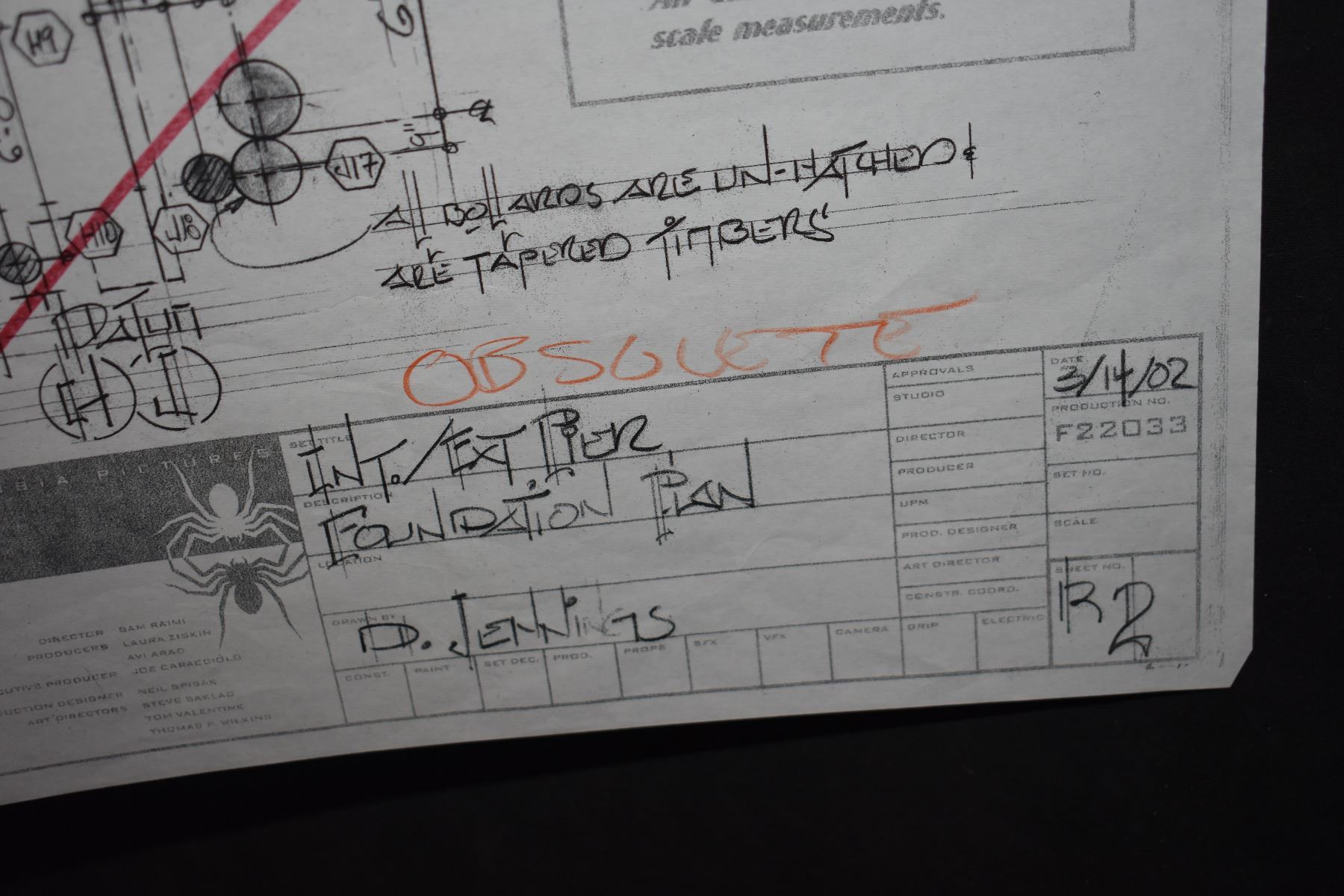 This is one of several "Original Productin Used" Blue Prints of Dock Ock's ocean front lab in SPIDER-MAN 2! From the office and personal collection of Grant McCune!