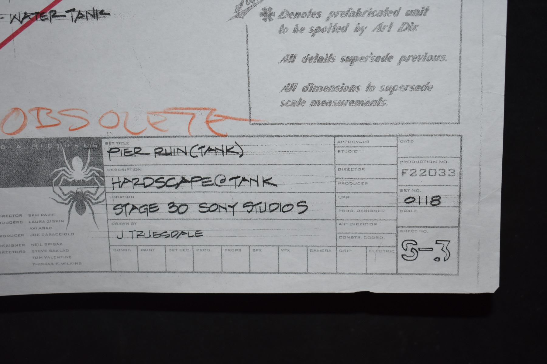 This is one of several "Original Productin Used" Blue Prints of Dock Ock's ocean front lab in SPIDER-MAN 2! From the office and personal collection of Grant McCune!