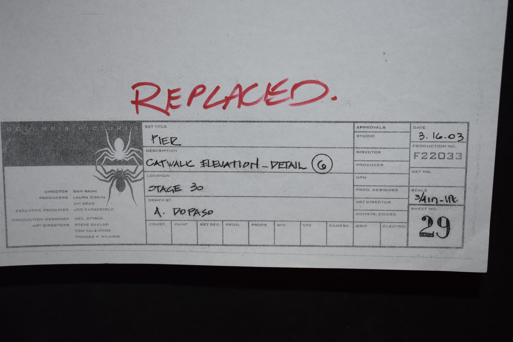 This is one of several "Original Productin Used" Blue Prints of Dock Ock's ocean front lab in SPIDER-MAN 2! From the office and personal collection of Grant McCune!