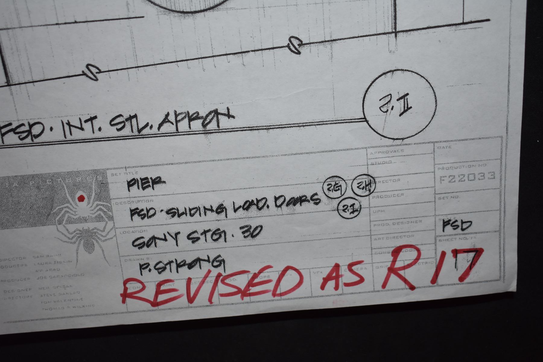 This is one of several "Original Productin Used" Blue Prints of Dock Ock's ocean front lab in SPIDER-MAN 2! From the office and personal collection of Grant McCune!