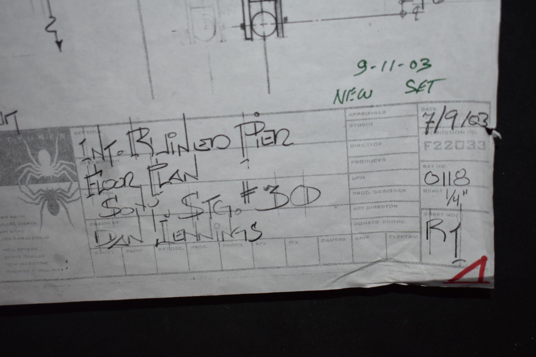This is one of several "Original Productin Used" Blue Prints of Dock Ock's ocean front lab in SPIDER-MAN 2! From the office and personal collection of Grant McCune!
