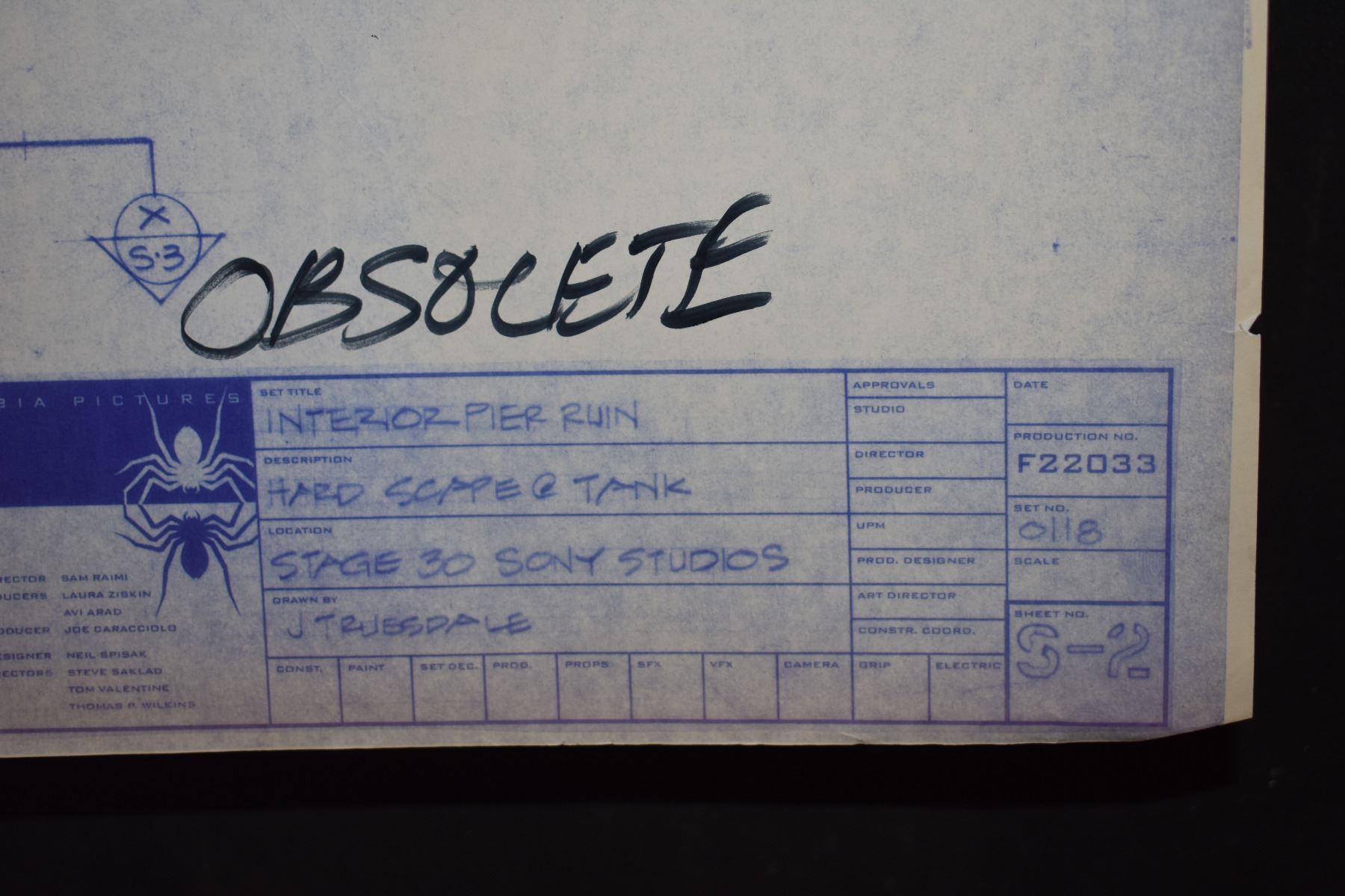 This is one of several "Original Productin Used" Blue Prints of Dock Ock's ocean front lab in SPIDER-MAN 2! From the office and personal collection of Grant McCune!