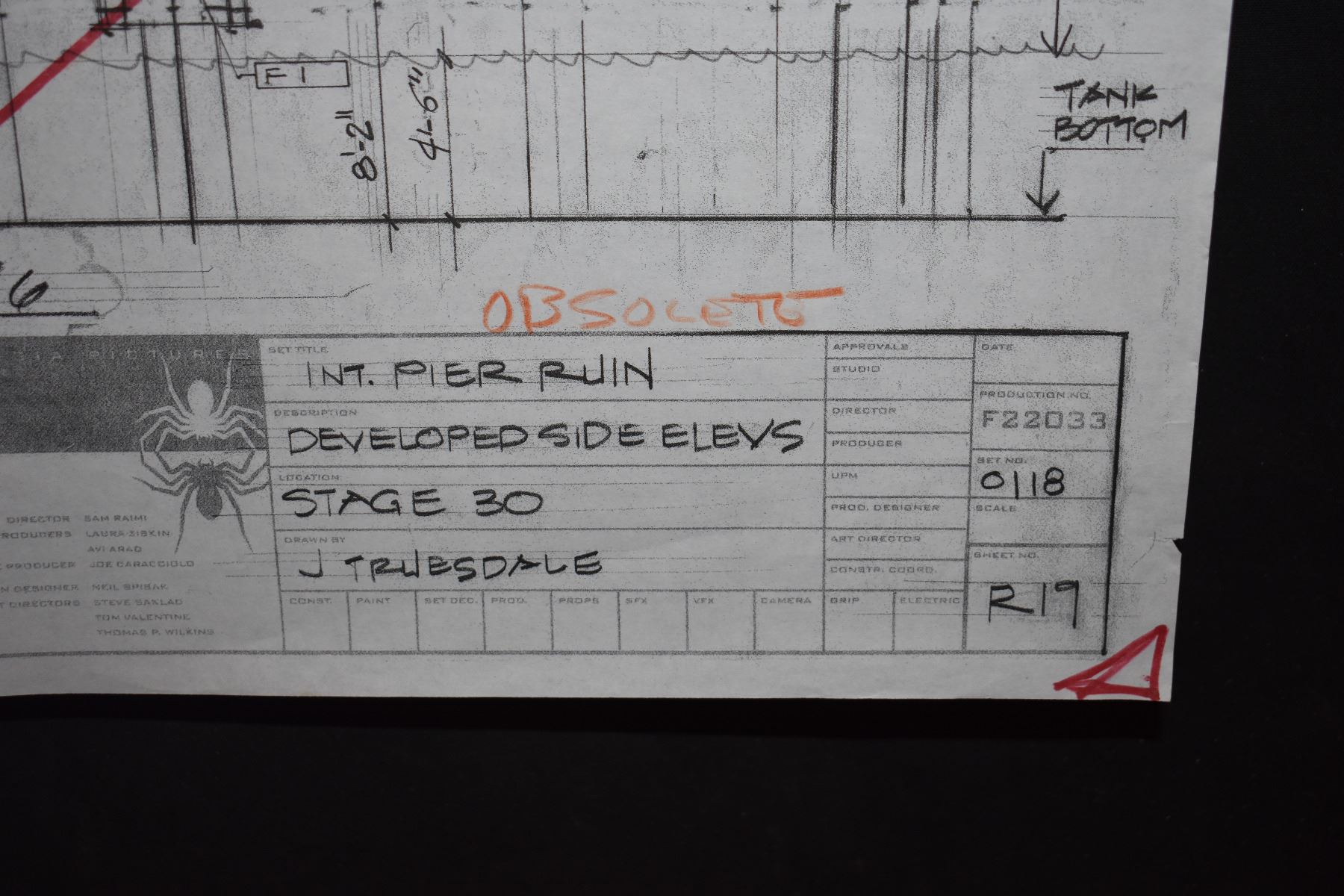 This is one of several "Original Productin Used" Blue Prints of Dock Ock's ocean front lab in SPIDER-MAN 2! From the office and personal collection of Grant McCune!