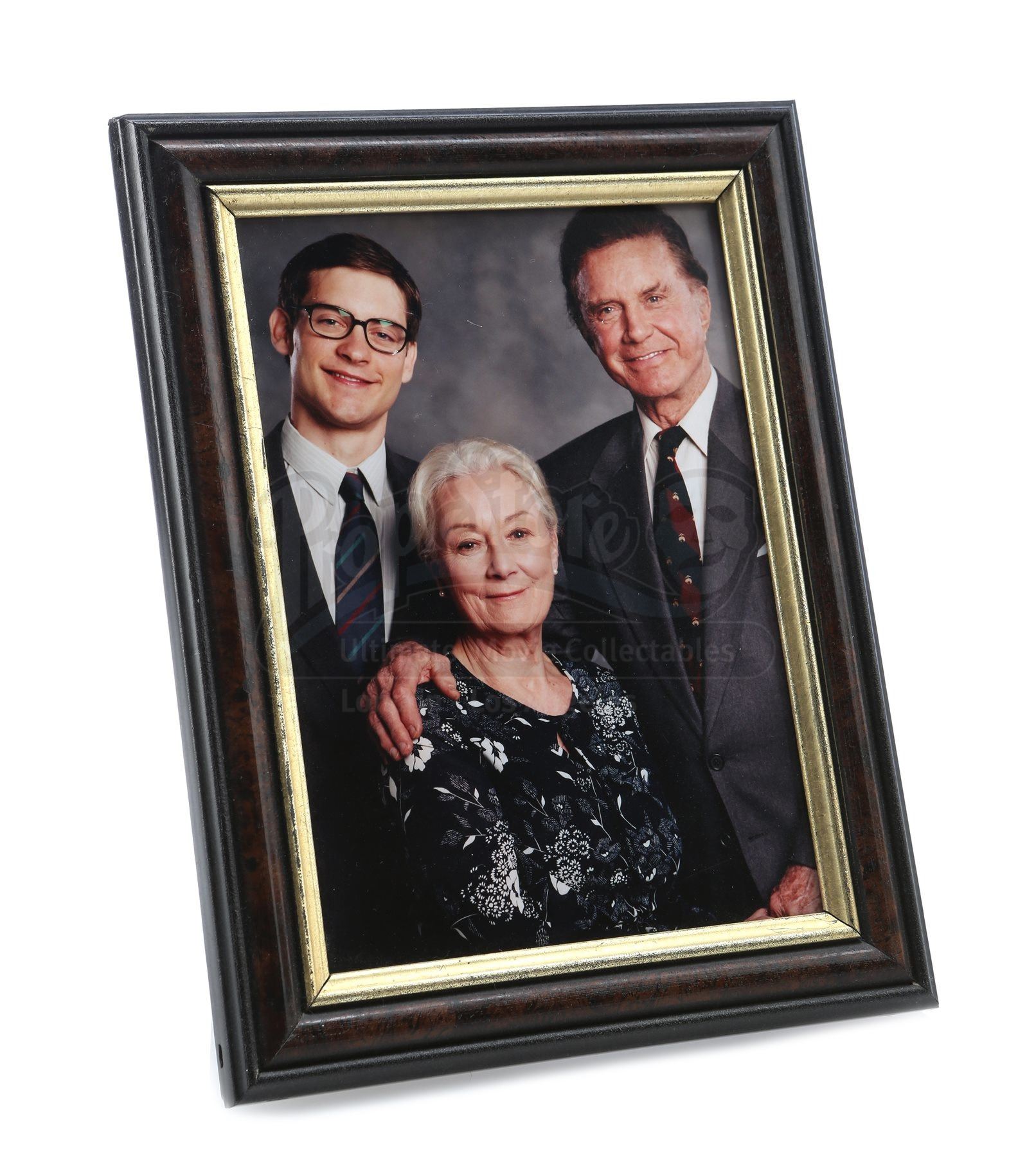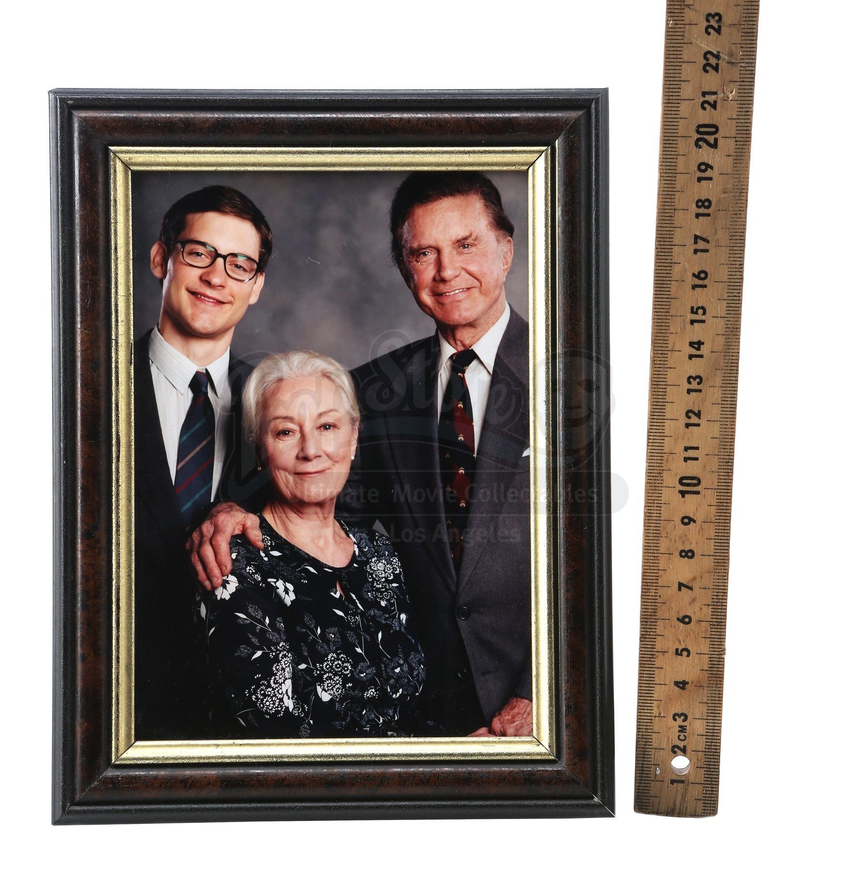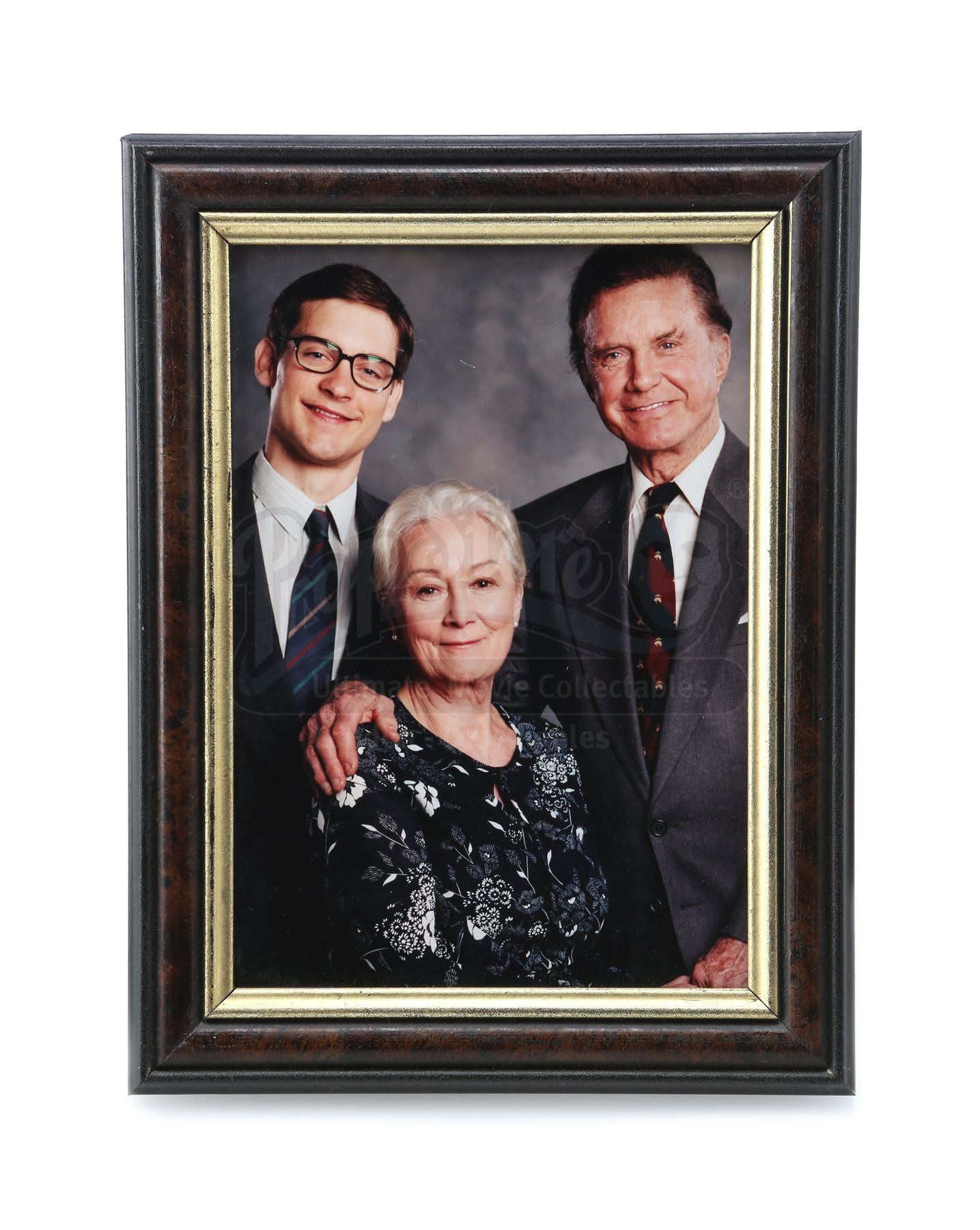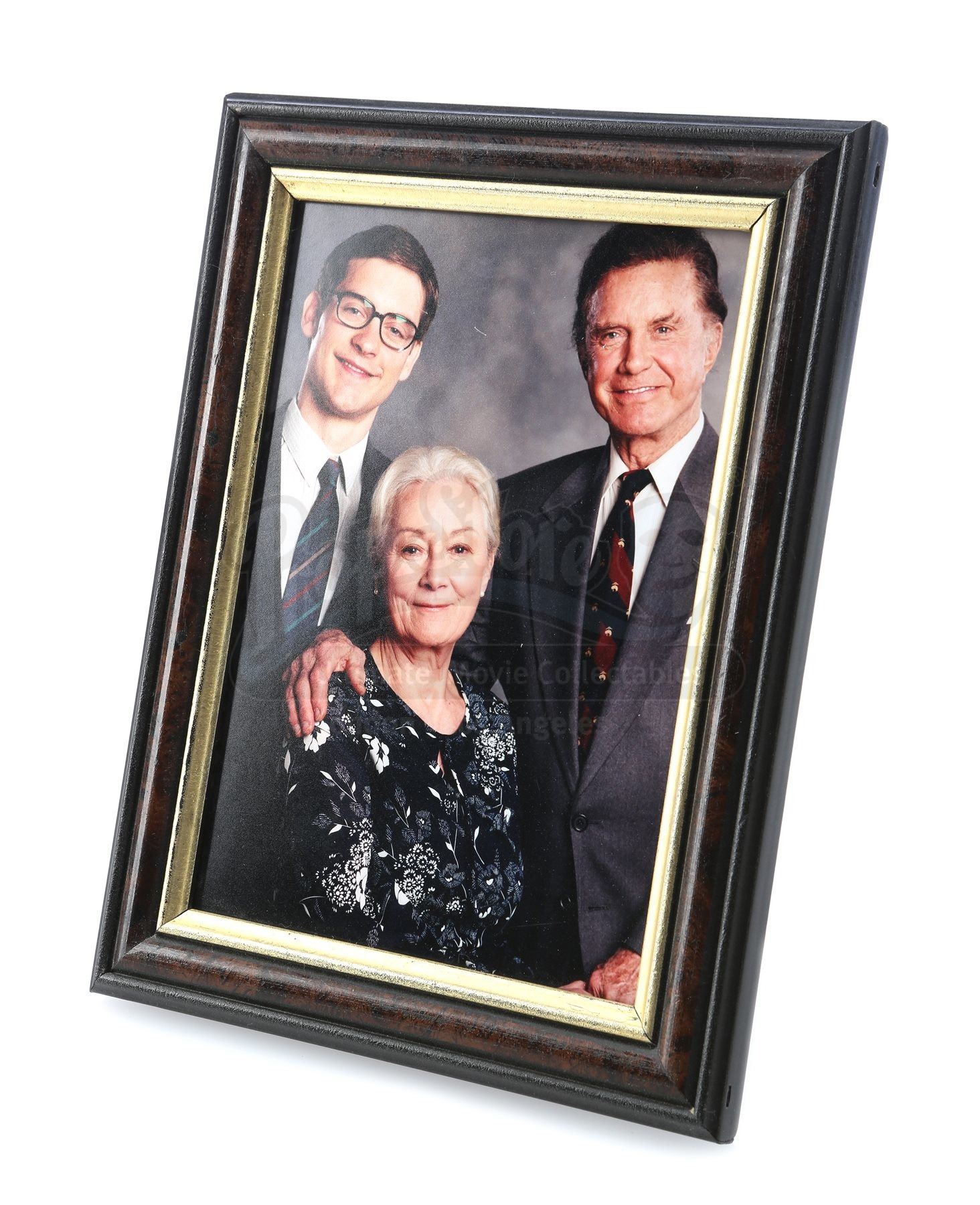 This family photo is displayed inside a wooden frame and shows the Parker family before Uncle Ben’s (Cliff Robertson) tragic death. It is sealed at the rear with a single piece of black gaffer tape. The frame contains no glass, in order to produce less glare and reflection during the filming process. Accompanying this lot is a certificate of authenticity from Columbia Pictures and a small note on Sony Pictures letterhead. This photo shows minimal signs of wear and is in very fine overall condition. Dimensions (framed): 21.5 cm x 16.5 cm (8 ½” x 6 ½”)