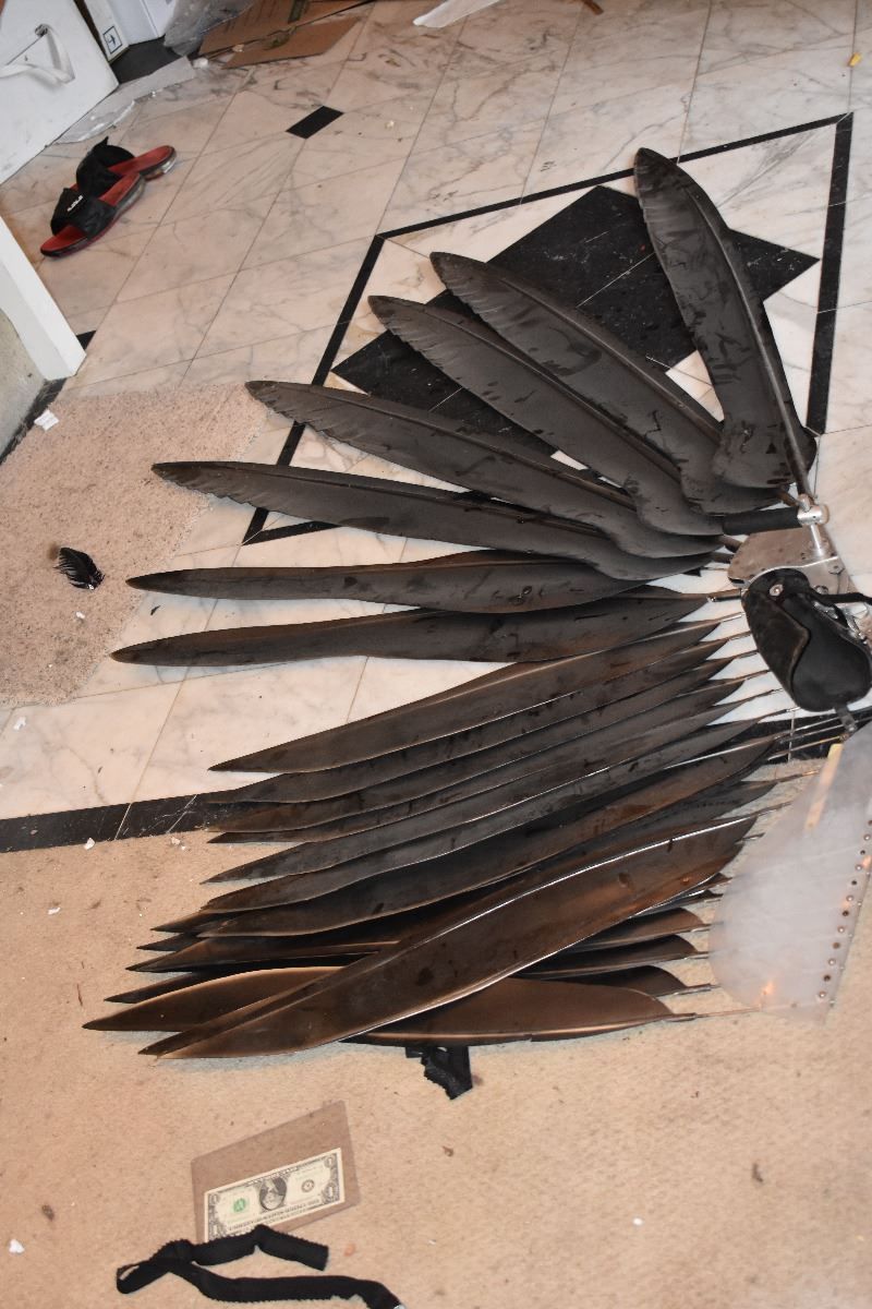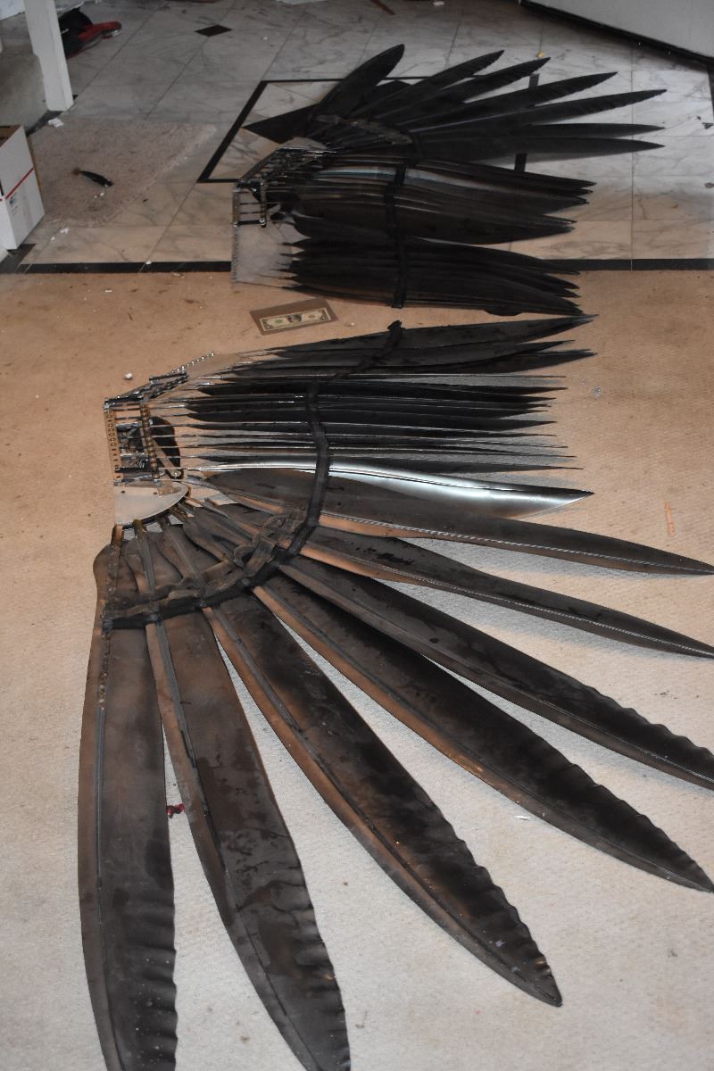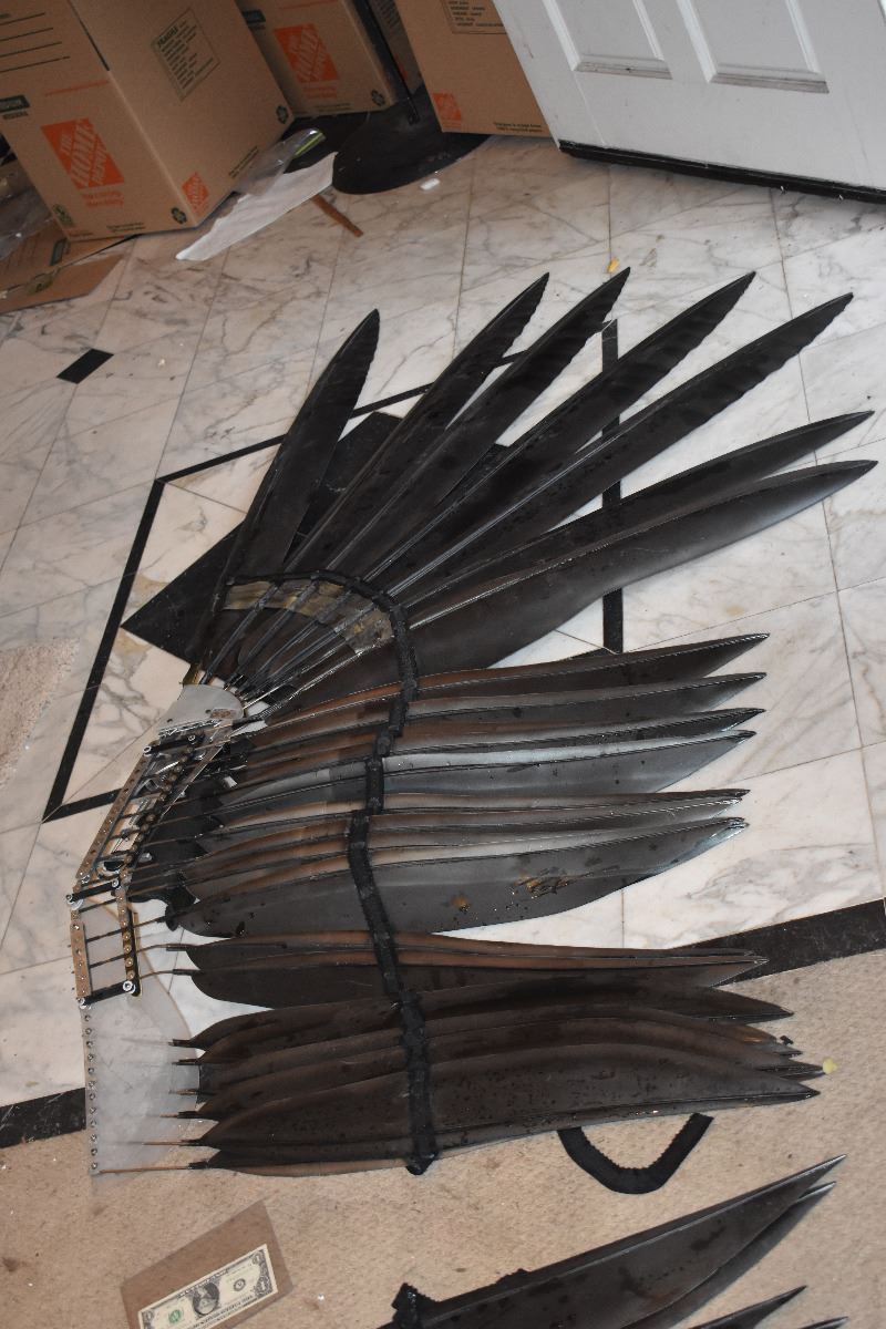 These are the Prototype VULTURE wings made for SPIDER-MAN 3 described in the write up below! Each has 25 urethane feathers. Fully wearable and functional but each shows some wear from use and storage. The R& D on these was about $50,000.00!