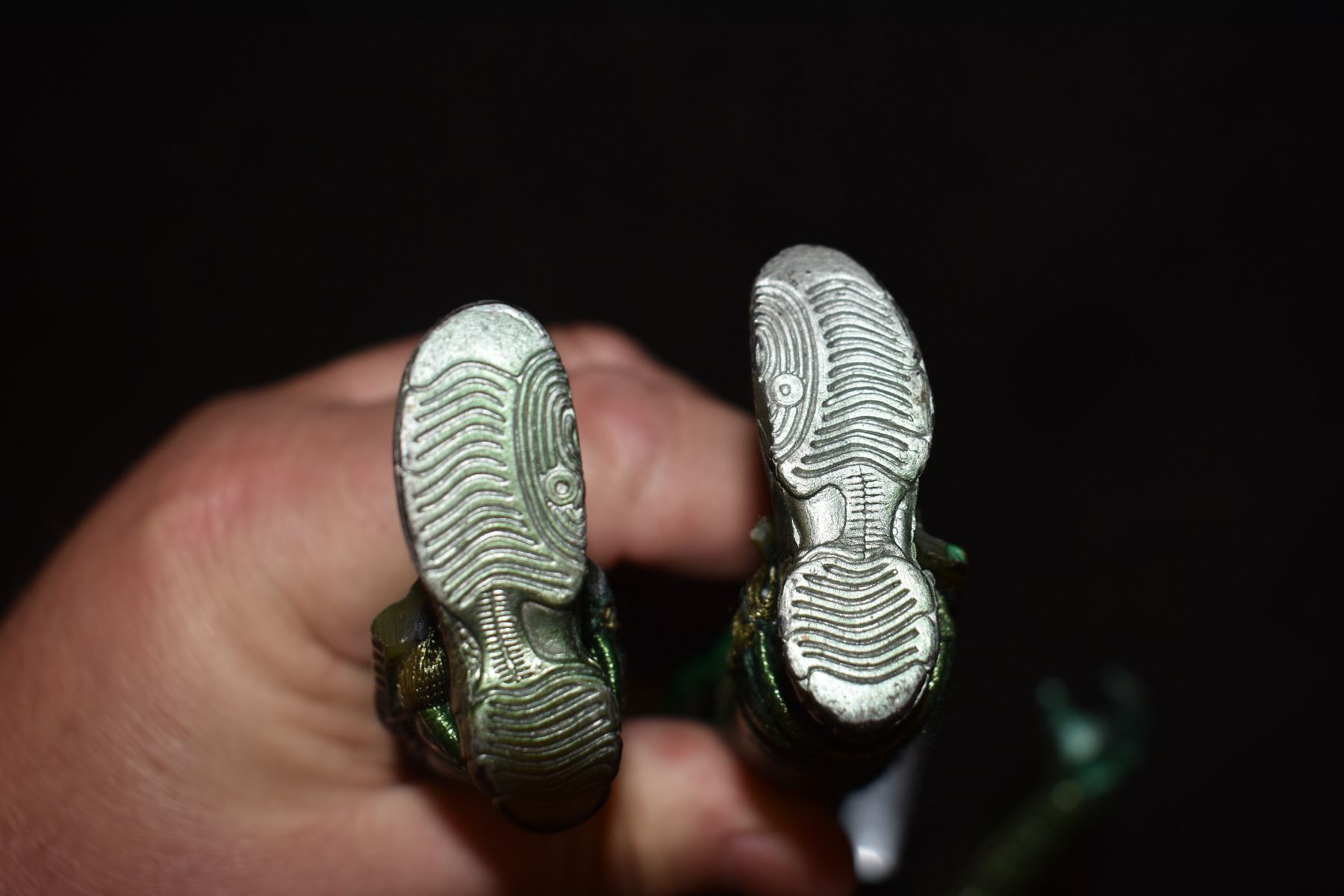 I have shown how the vest armor was sealed in place and the feet bottom which is where the Copyright and Licensing credits would normally be.