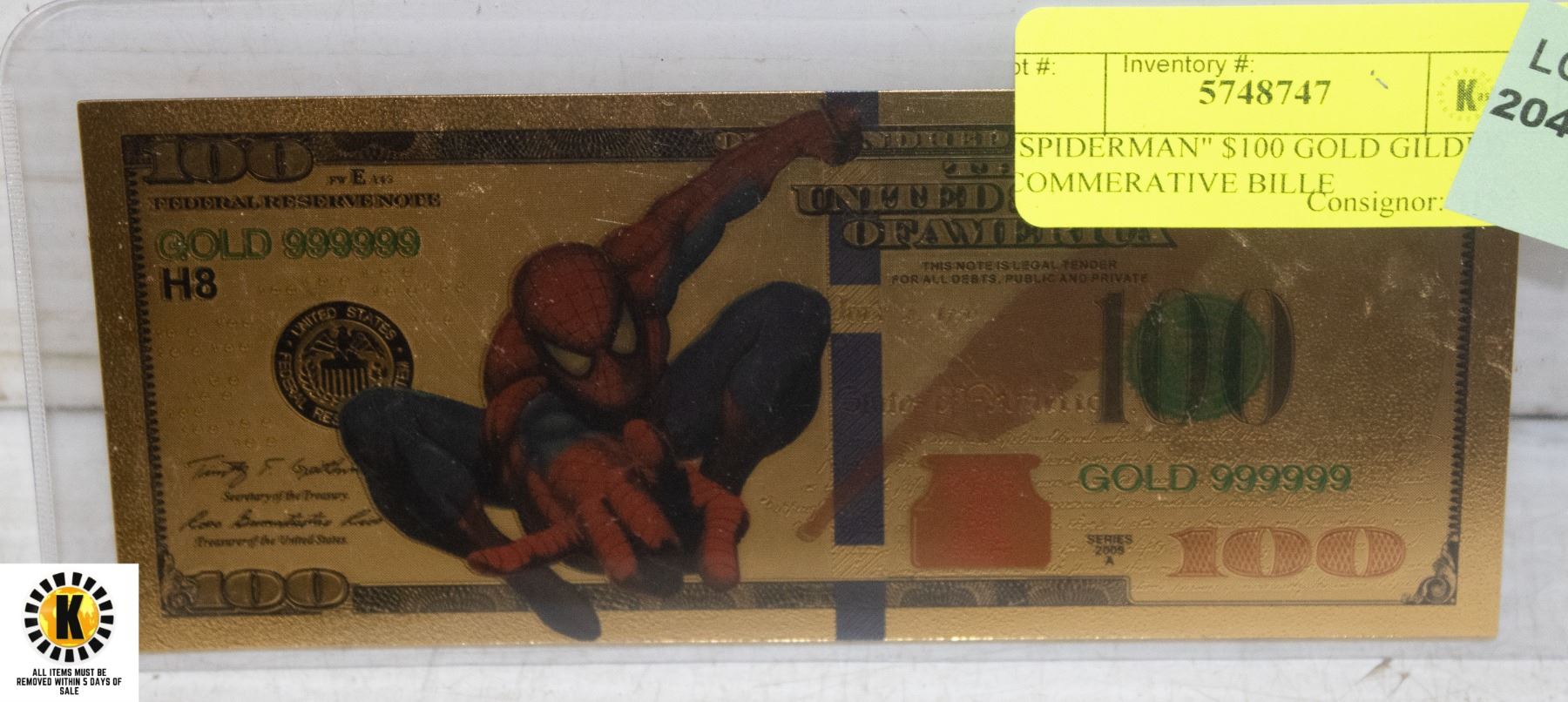 "SPIDERMAN" $100 GOLD FOIL NOVELTY BILL