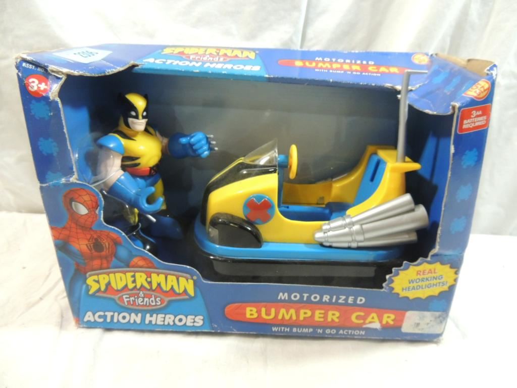 WOLVERINE MOTORIZED BUMPER CAR WITH BUMP N GO ACTION REAL WORKING HEADLIGHTS, NEW IN BOX, GAME, TOY, ACTION HERO AS SHOWN SEE PHOTO FOR MORE DETAILS.