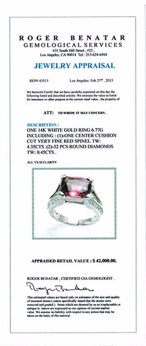SPINEL 4.35CT, 14K W/G RING 6.77GRAM / DIAMOND RD 0.45CT