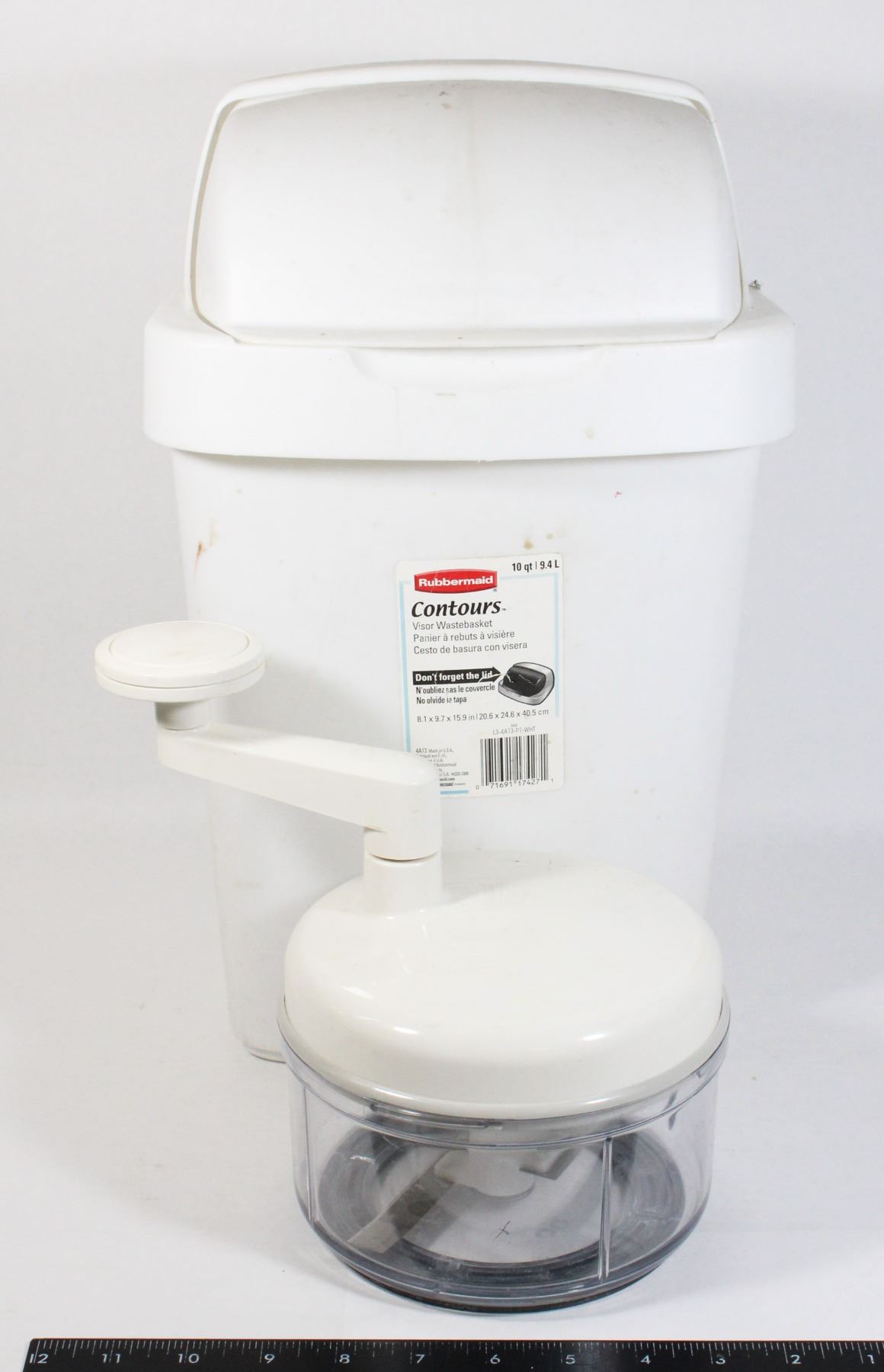 SPINNING FOOD SLICER SOLD WITH SMALL GARBAGE CAN