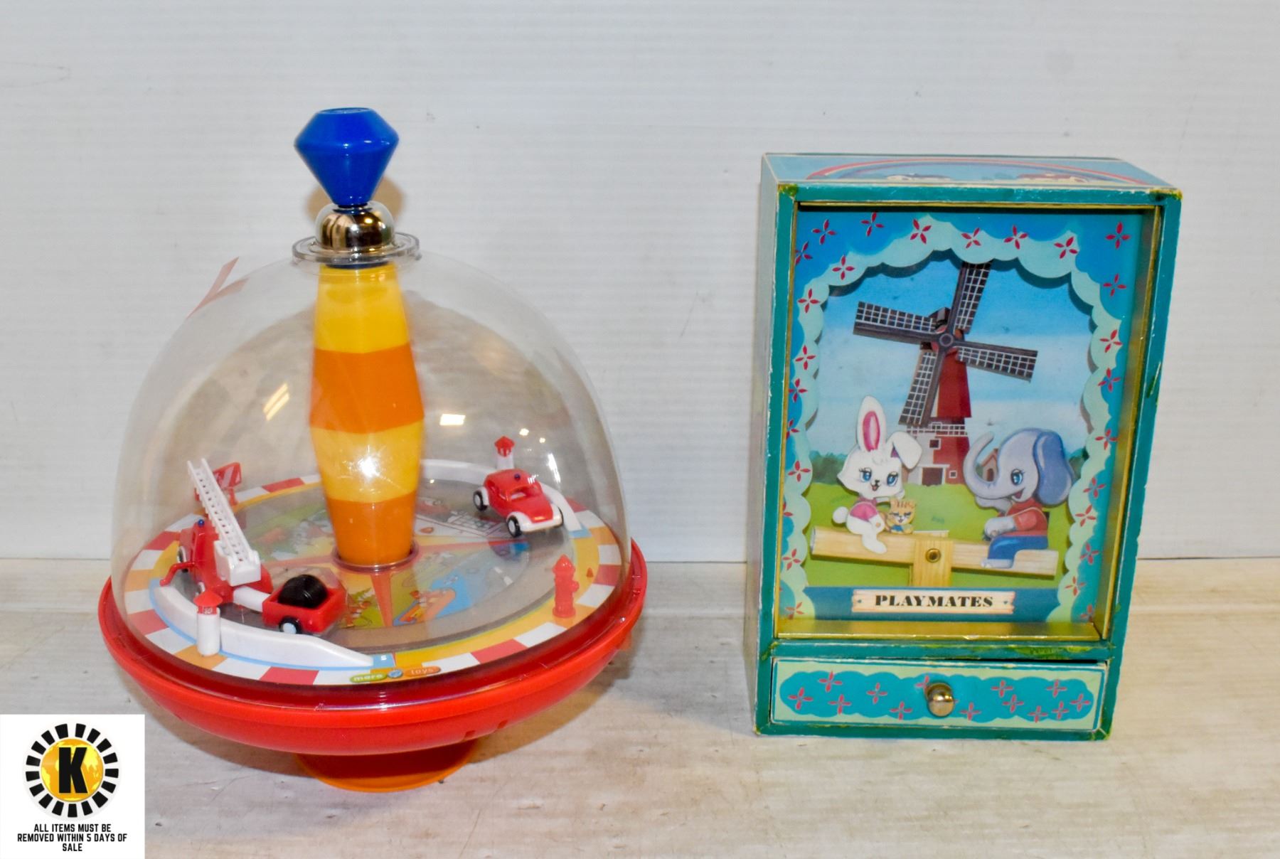 SPINNING TOP & ANIMATED VINTAGE MUSIC BOX TOGETHER