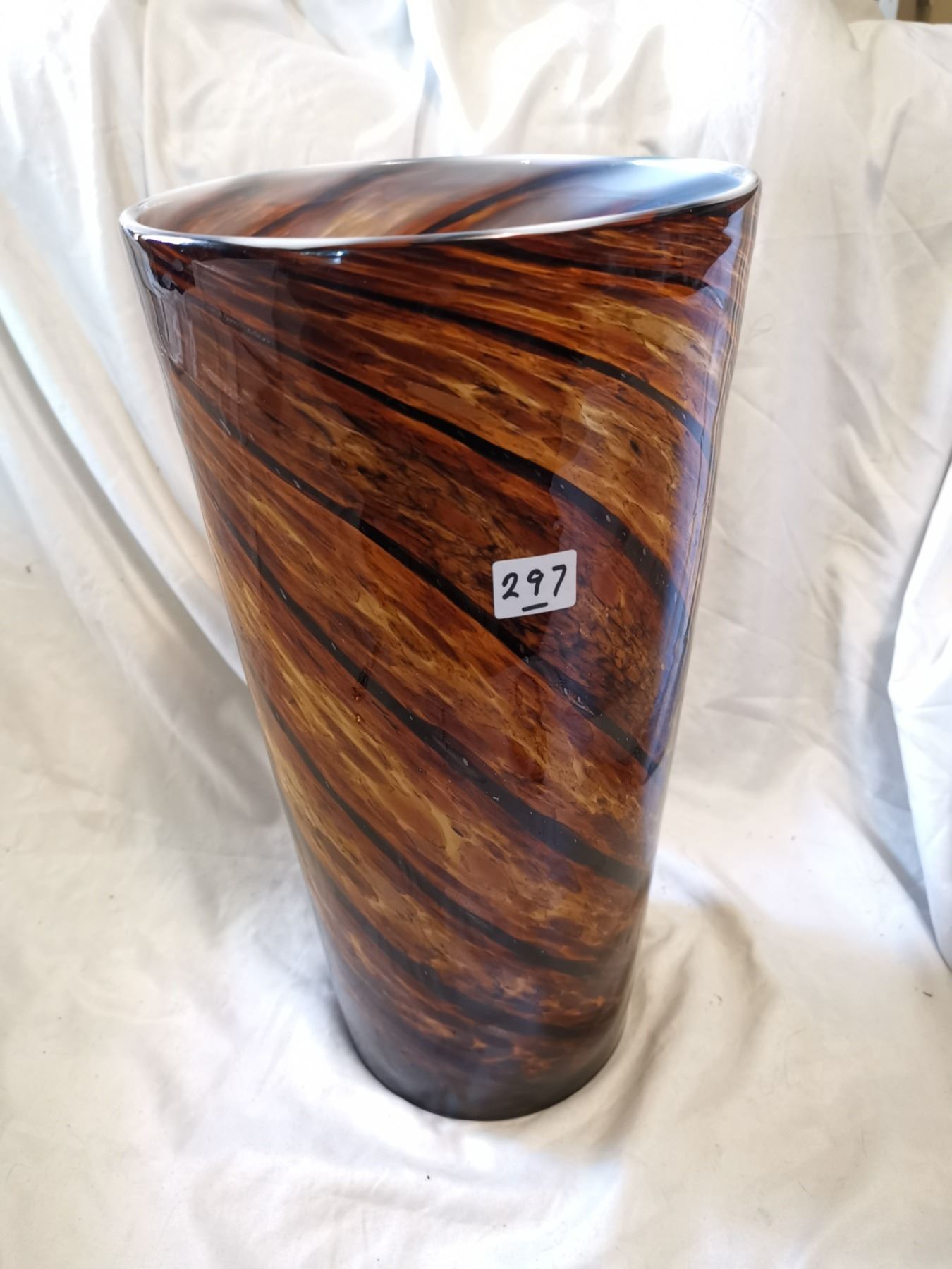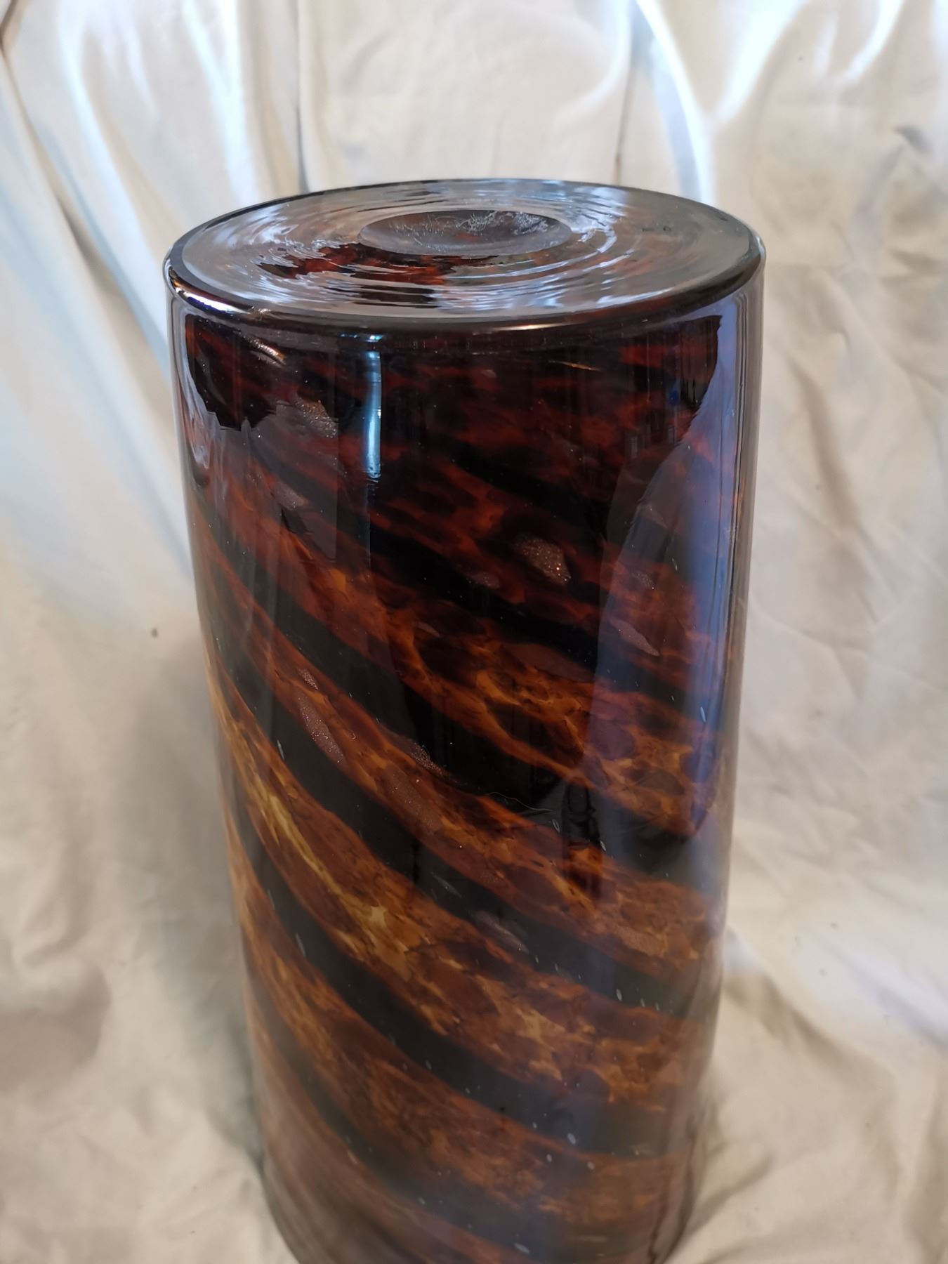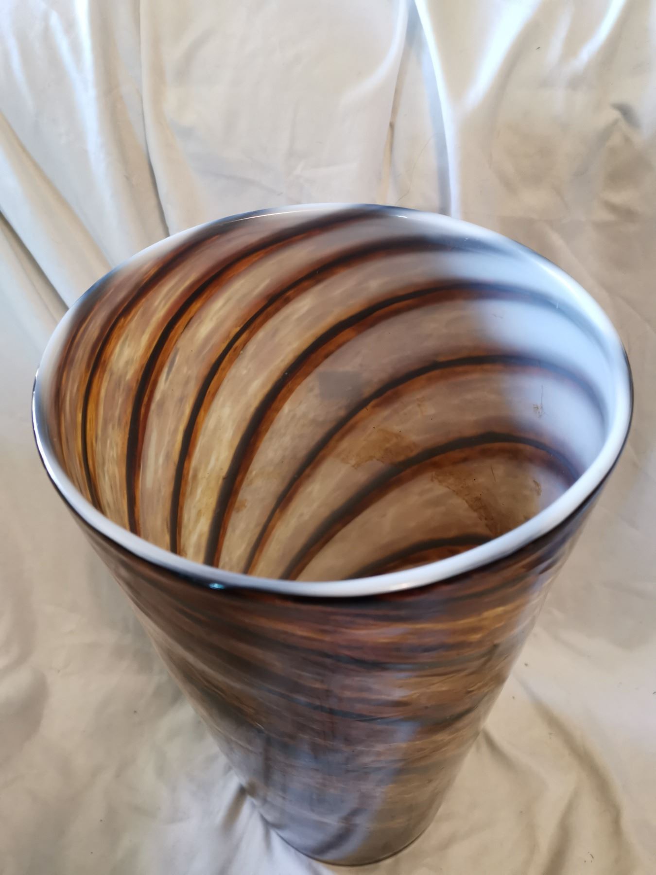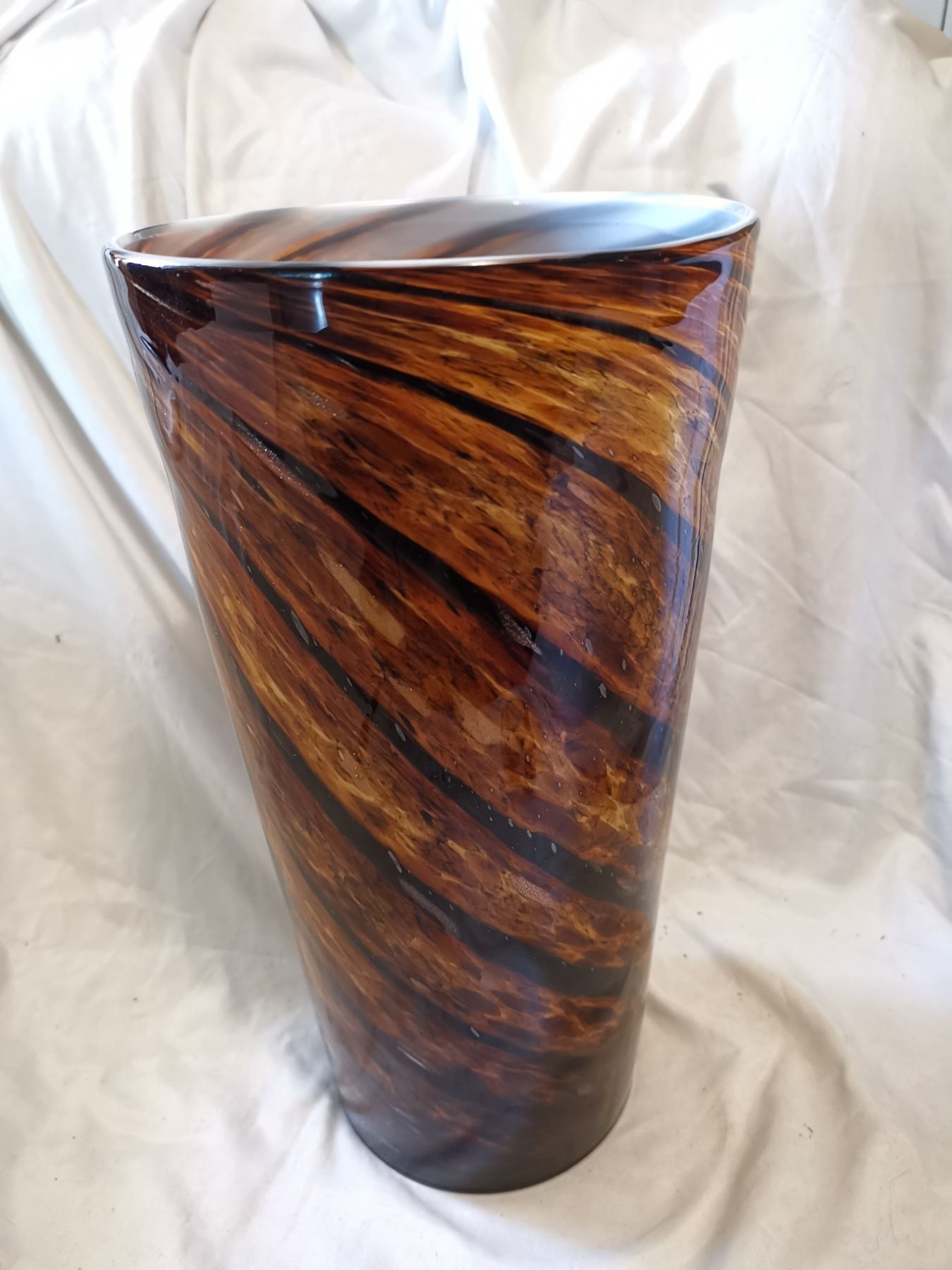 SPIRAL BROWN TALL AND WIDE ART GLASS, 15” TALL
