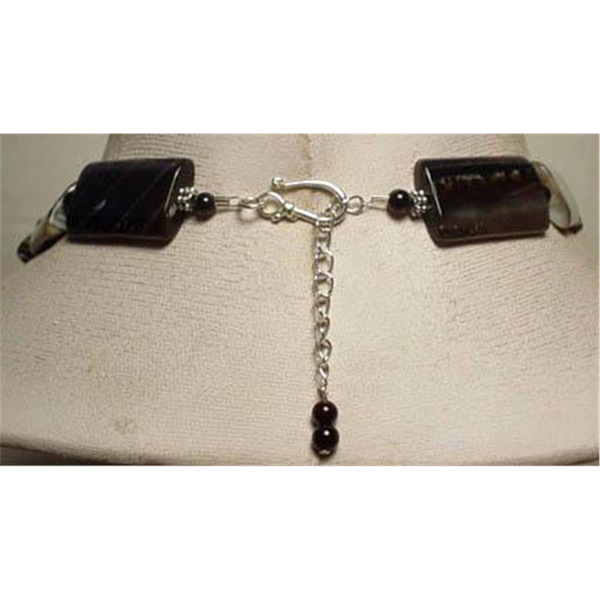 SPLENDID Agate bead necklace, measures 16 1/2in to 18in, , separated by 4mm black Onyx beads, with sterling silver clasp.
