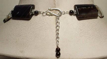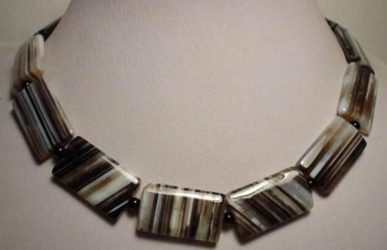 SPLENDID Agate bead necklace, measures 16 1/2in to 18in, , separated by 4mm black Onyx beads, with sterling silver clasp.