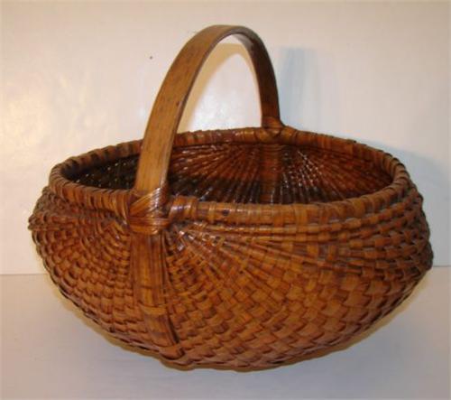 SPLINT-OAK BUN BASKET WITH HANDLE. 11.5” H to top of handle.