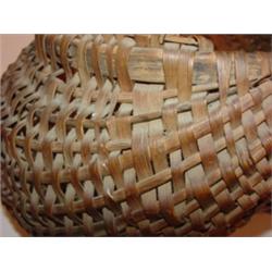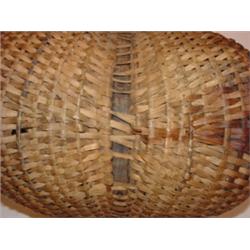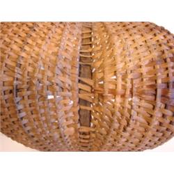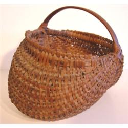 Splint oak buttocks basket with handle. Tightly woven with no repairs or damage. 9" H to top of handle.
