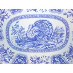 SPODE BLUE TRANSFERWARE MEAT PLATTER with turkey decoration. Marked on bottom "Spode England". 16" W
