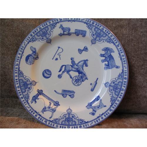 Edwardian Childhood Plate by Spode. Beautiful blue and white decorated plate. Measures 7 1/2 inches in diameter and decorated with childhood toys on the iterior and the alphabet and numbers running along the rim of the plate.