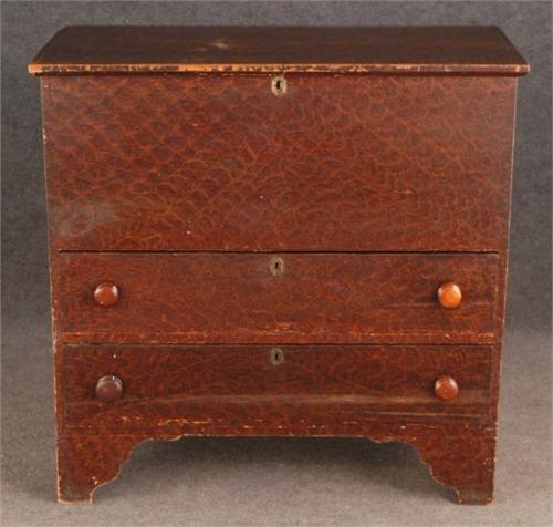 SPONGE DECORATED BLANKET CHEST over two drawers with high shaped bracket feet, circa 1820 41"x41"x20" <BR>condition: excellent original surface, knobs old replacements