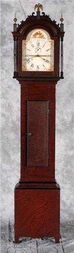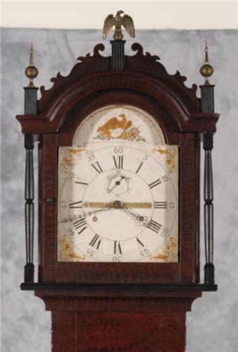 SPONGE DECORATED TALL CLOCK, signed "R. Whiting", with 30 hour wooden works early 19th century, condition: lacking part of suspension, surface possibly not original, 89 1/2" high, SHIPPING: See recommended third party shippers. This item can't be packe
