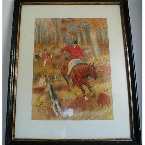 Sensational matched pair of original watercolors of Fox Hunt on textured paper. This is an exceptional and delightful pair of paintings in original frames, late 19th, early 20th century, most likely English.