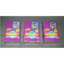 LOT OF 3 FACTORY SEALED WAX PACK BOXES OF 1991 SCORE BASEBALL CARDS