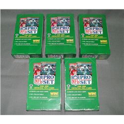 LOT OF 5 FACTORY SEALED WAX PACK BOXES OF 1990 PROSET FOOTBALL CARDS SERIES 1