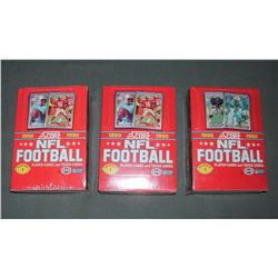 LOT OF 3 FACTORY SEALED WAX PACK BOXES OF 1990 SCORE FOOTBALL CARDS SERIES 1