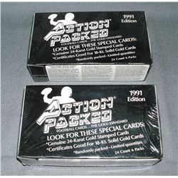 LOT OF 2 FACTORY SEALED WAX PACK BOXES OF 1991 ACTION PACKED FOOTBALL CARDS