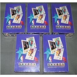 LOT OF 5 FACTORY SEALED WAX PACK BOXES OF 91-92 SKYBOX BASKETBALL CARDS