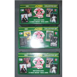 LOT OF 3 FACTORY SEALED SETS OF 1991 SCORE BASEBALL CARDS