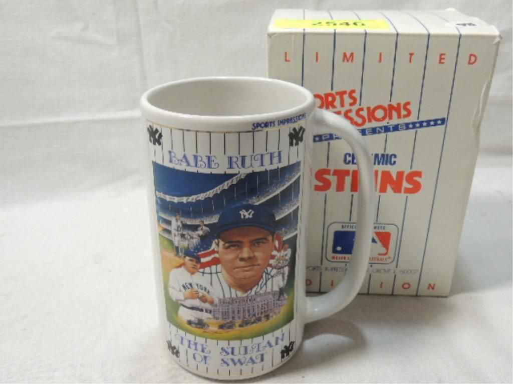 COLLECTIBLE, LISCENSED CERAMIC STEIN CELEBRATING THE LEGENDARY BABE RUTH.