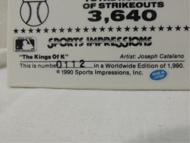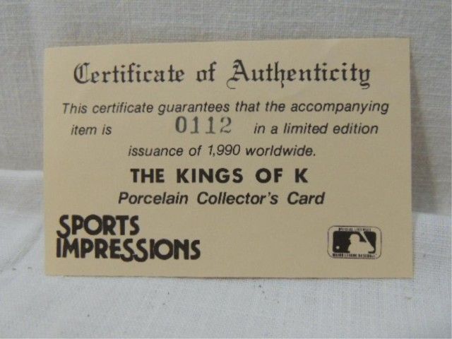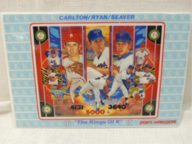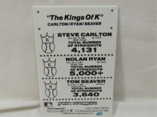 SPORTS IMPRESSIONS KING OF K CARLTON, RYAN, SEAVER. PORCELAIN COLLECTOR CARD. AS SHOWN. VIEW PICTURE FOR DETAIL.