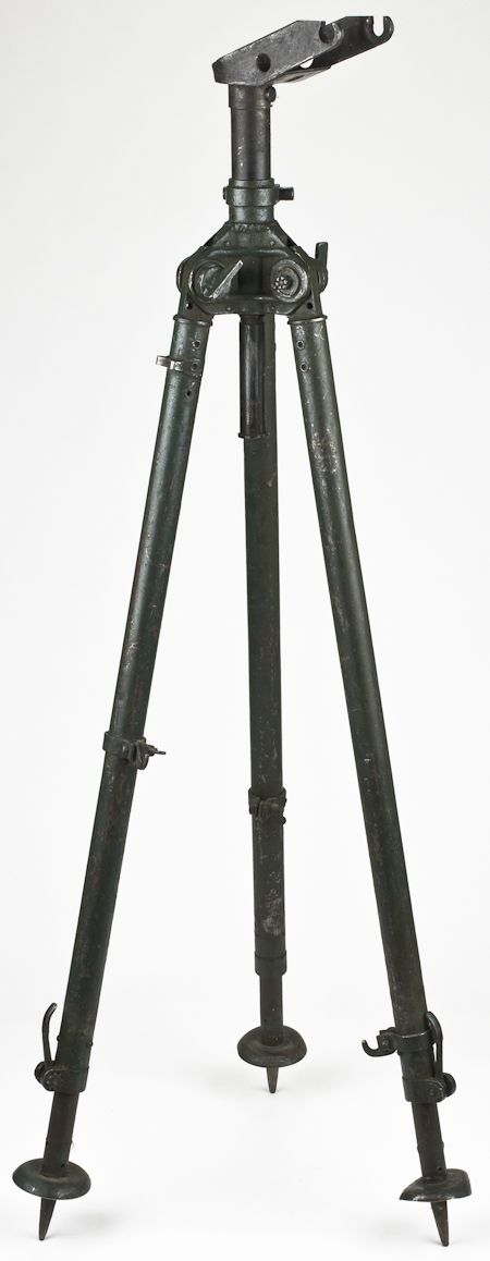 Spotting scope stand, likely German manufacture, ca. 1940, 50" tall with extendable legs and tension adjustment. No maker's mark apparent. Requires third-party shipping. Please see Terms and Conditions of Sale.