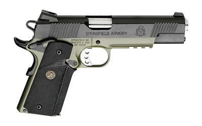 Springfield, Operator, Semi-automatic, 1911, Full Size Pistol, 45 ACP, 5" Barrel, Steel Frame, 7Rd, Akote Slide over OD Frame Finish, Tritium Night Sights, Range Bag