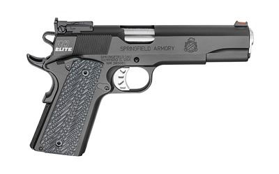 Springfield, Range Officer Elite, Target, Semi-automatic, 1911, Full Size, 45 ACP, 5" Match Grade Barrel, Steel Frame, Black T Finish, G10 Black Grips, 2-7Rd Magazines, Ambidextrous Thumb Safety, Fiber Front & Adjustable Rear Sights, Range Bag