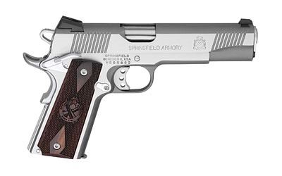 Springfield, 1911 Loaded, 45ACP, 5" Match Grade Barrel, Forged Stainless Steel Slide and Frame, Cocobolo Grips, 3-Dot Low Profile Combat Sights, Ambidextrous Safety, 7Rd, 2 Magazines
