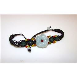 Vintage adjustable jade green carved flower and beads bracelet in very good condition.