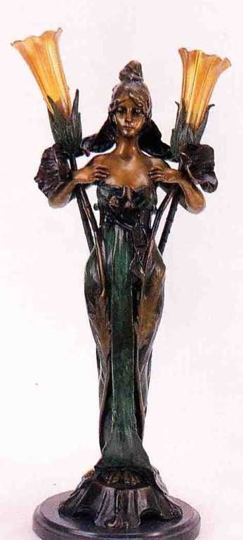 "SPRING FLOWERS" BRONZE SCULPTURE LAMP - AFTER AMTNIPSON - MUSEUM QUALITY VERDI FINISH - MOUNTED ON A FINE ITALIAN MARBLE BASE - BEAUTIFULLY DETAILED - SIGNED - MINT CONDITION - 28"H X 9"W - LOST WAX CAST BRONZE