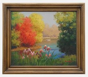 "SPRING POND" - ORIGINAL FRAMED OIL -BEAUTIFULLY FRAMED - SIGNED - 26X30 - PROFESSIONALLY FRAMED & MATTED