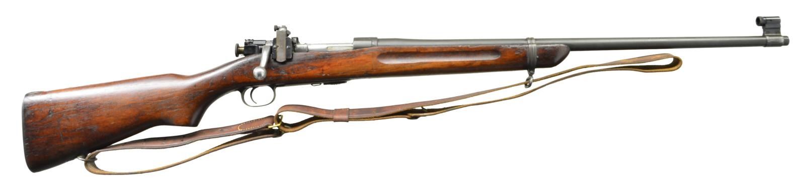 Cal. 22 LR. S #1382B. Bbl. 24 1/2" marked "SA/Flaming Bomb/8-25". Matching electro pencil number on bolt body. Top of receiver is marked "U.S./SPRINGFIELD ARMORY/MODEL OF 1922 MII CAL. .22/S #". Bolt is marked "NS/M2" on handle & "M2" on forward half. Lyman 48 aperture rear sight. Replacement Lyman globe front sight. Pistol grip walnut stock w/ open box Springfield Armory stamp on left side of butt. Checkered M2 style buttplate. Bottom mounted sling swivels w/ aftermarket leather sling. MAGS: 3 5 rd, one unmarked and two marked "M2" on the left side. CONDITION: walnut stock shows scattered dings & handling marks. Metal retains 90% gray arsenal parkerized finish w/ some light scratches on front sight base, scattered fading & light silvering on the exposed edges. Very good bore. (22-3289/MJC). CURIO. $600-900.