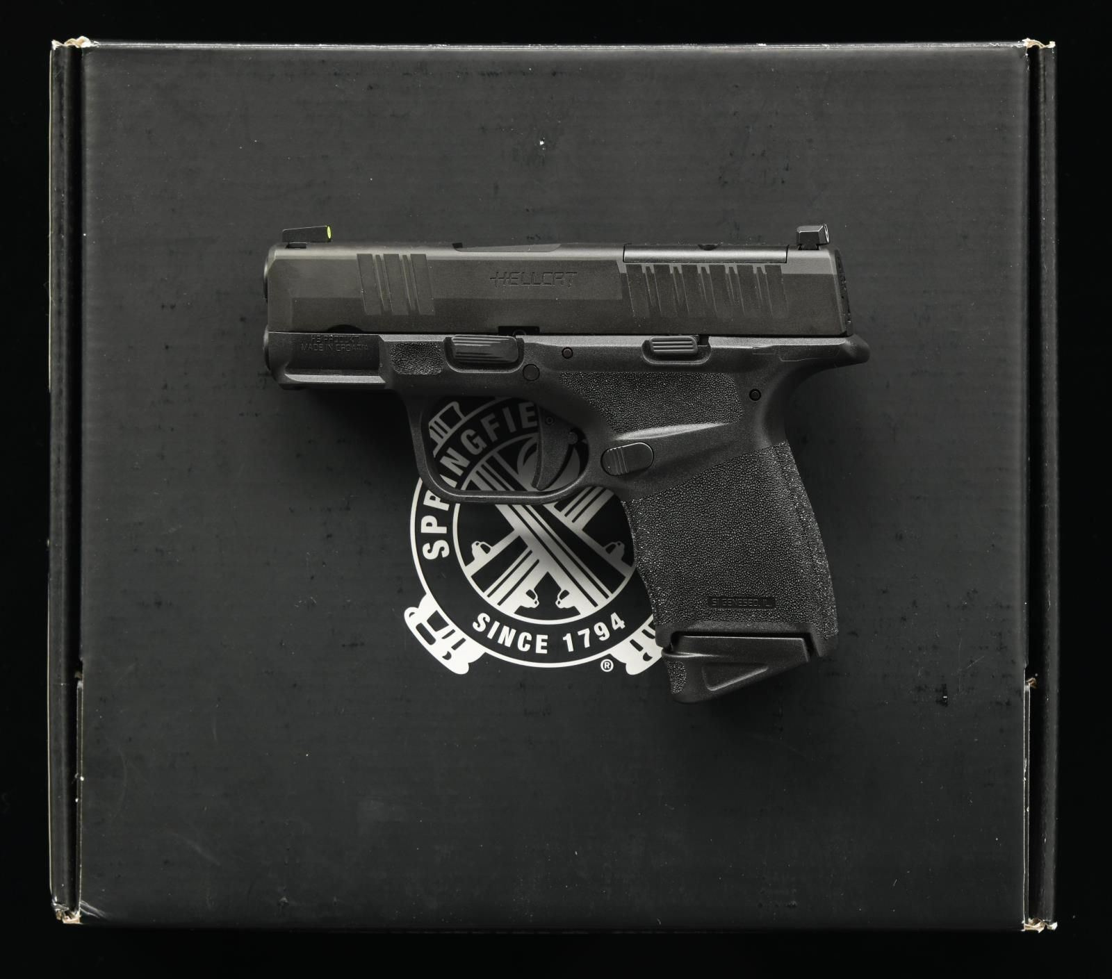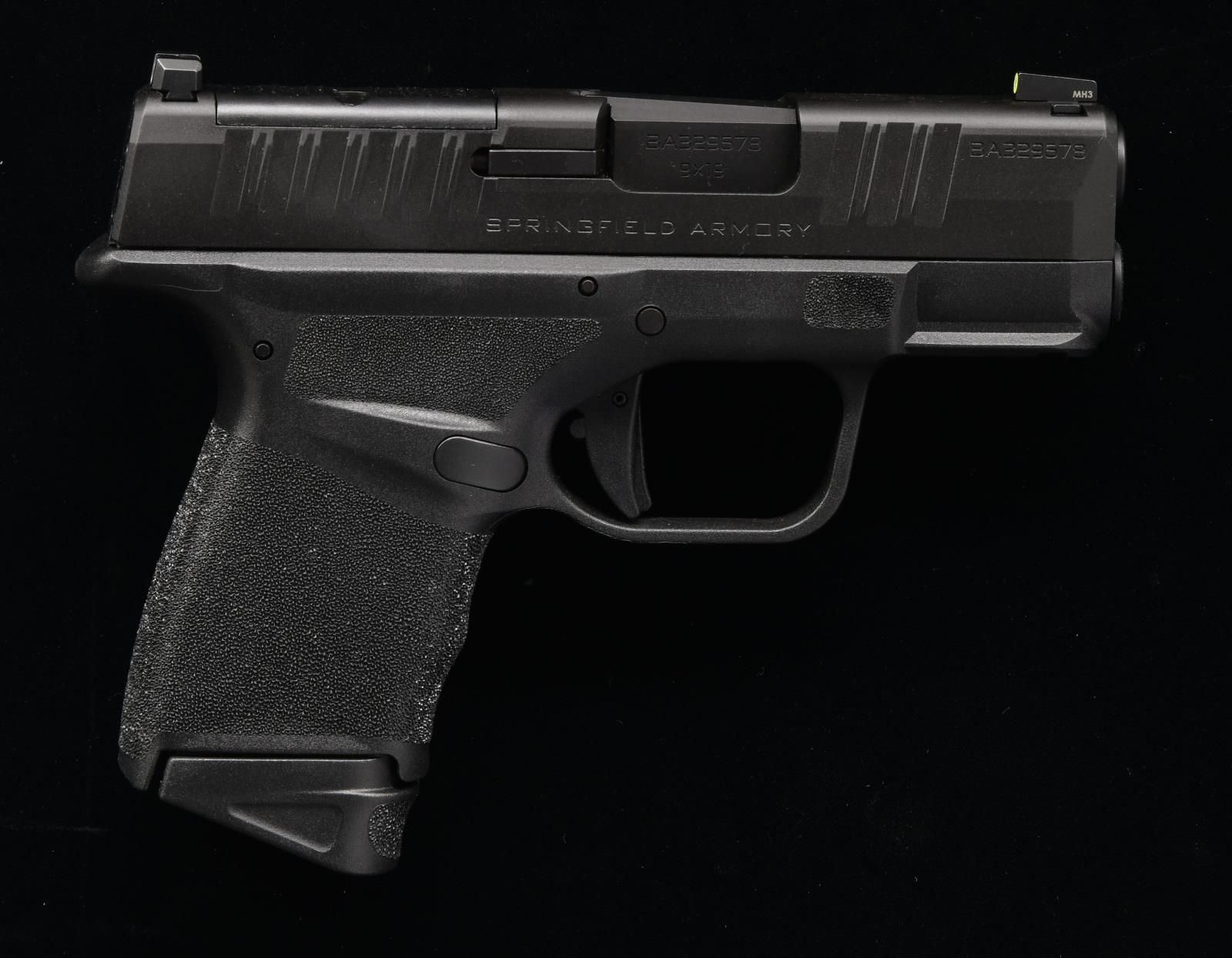 Cal. 9x19. S# BA329678. Bbl. 3". Large dot tritium front sight. U-notch rear sight. Slide has factory cut for RMR plate for reflex sight mounting. Matte black finish. Polymer frame w/ accessory rail. MAGS: 1-11 rd. & 13-rd. Total of 2. UNATTACHED ACCESSORIES: matching numbered factory box w/ softcase, manual, cable lock, spare mag baseplate, & mag loader. CONDITION: all aspects near new, in the box. PROVENANCE: the Collection of Gun Sport Ltd owned by Jon R. Thomas. (23-2981/MJC). MODERN. $300-500.