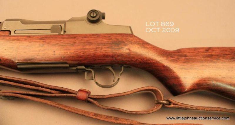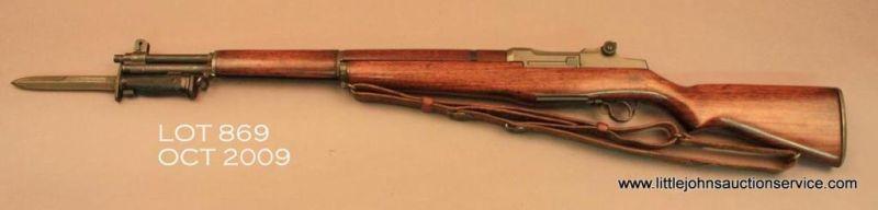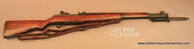 SPRINGFIELD ARMORY M-1 Garand, # 2938181, .30/06, re-parkerized finish, leather sling and bayonet. This arsenal reworked Garand remains in excellent as rebuilt condition. āPā proofed stock has been refinished, no visible cartouches, barrel date1965. Est. $500-$1,000.