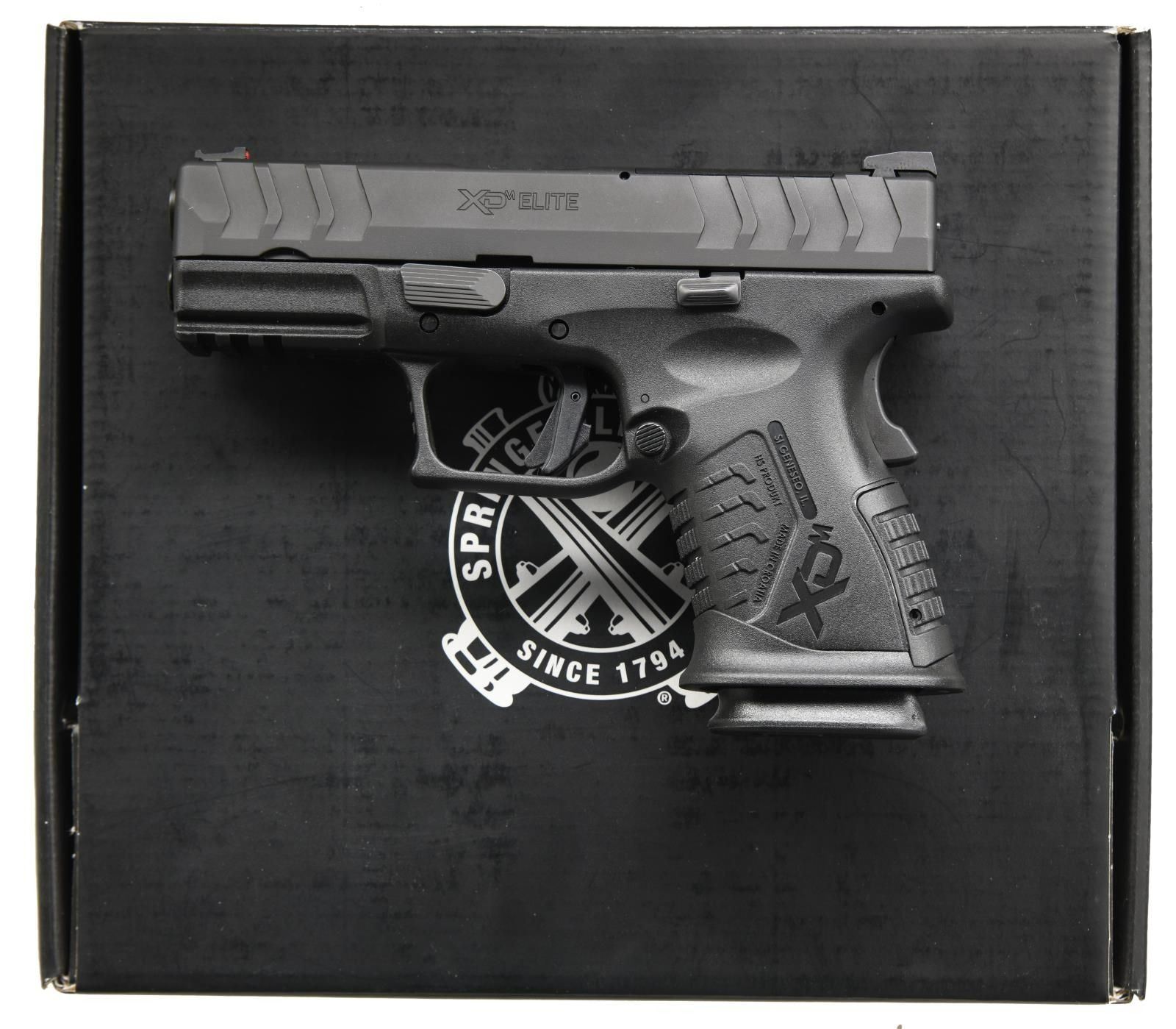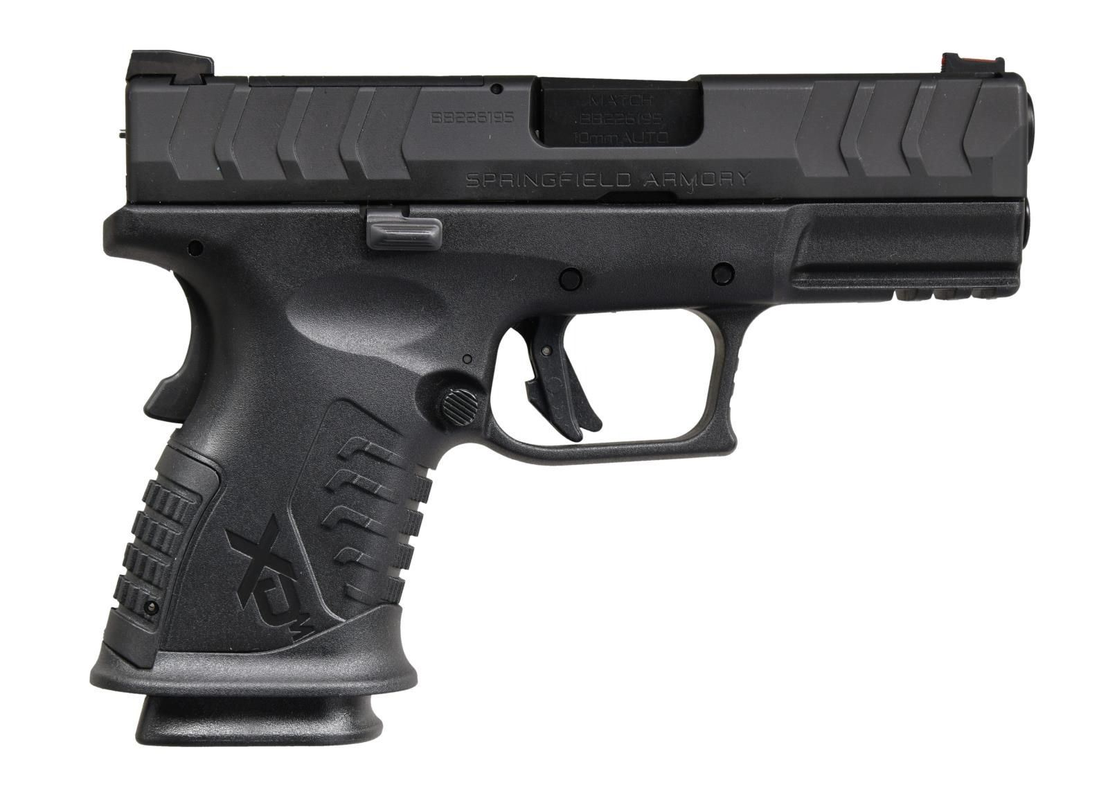 Cal. 10mm. S# BB226195. Bbl. 3 3/4". Fiber optic front sight. White outline U-notch rear sight. Slide has factory cut for RMR plate for reflex sight mounting. Matte black finish. Polymer frame w/ accessory rail. MAGS:2-10 rd. UNATTACHED ACCESSORIES: matching numbered factory box w/ softcase, cable lock, two grip straps, two spare mag baseplates, manual, & paperwork. CONDITION: all aspects near new, in the box. PROVENANCE: the Collection of Gun Sport Ltd owned by Jon R. Thomas. (23-2866/MJC). MODERN. $350-550.