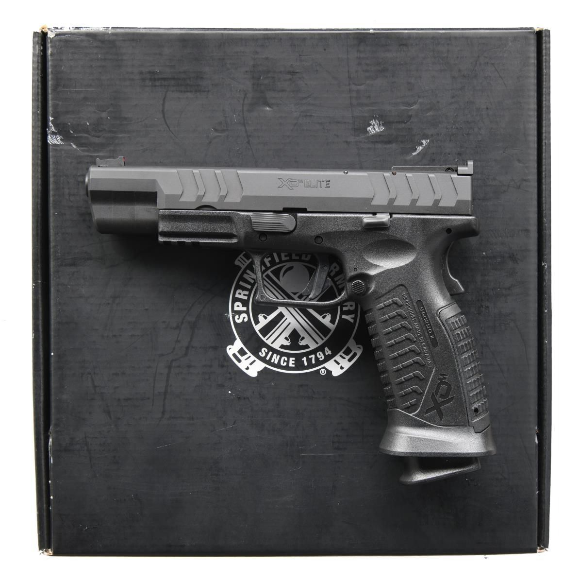 Cal. 9mm Luger. S# BA691467. Bbl. 4 1/2". Fiber optic front sight. Black adjustable rear sight. Ported slide. Matte black finish. Polymer frame w/ accessory rail. MAGS: 3-19 rd. UNATTACHED ACCESSORIES: matching numbered factory box w/ softcase, manual, paperwork, two spare mag baseplates, two grip straps & cable lock. CONDITION: all aspects near new in the box. PROVENANCE: The Collection of Gun Sport Ltd owned by Jon R. Thomas. (23-4379/MJC). MODERN. $300-500.
