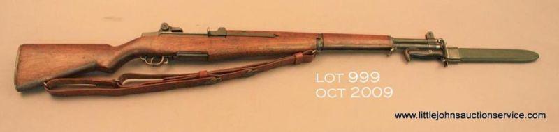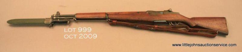 SPRINGFIELD M-1 Garand, # 3456080, .30/06, Parkerized finish, smooth walnut stock has been sanded and refinished, with bayonet and leather sling. Rifle is in good condition overall, SA barrel is dated 1-45, stock shows āPā inspectionmark and faint cartouche on left side. Stock is in good condition showing dings and marks consistent with carry and use, bore is very good. Est. $600-$1,200.