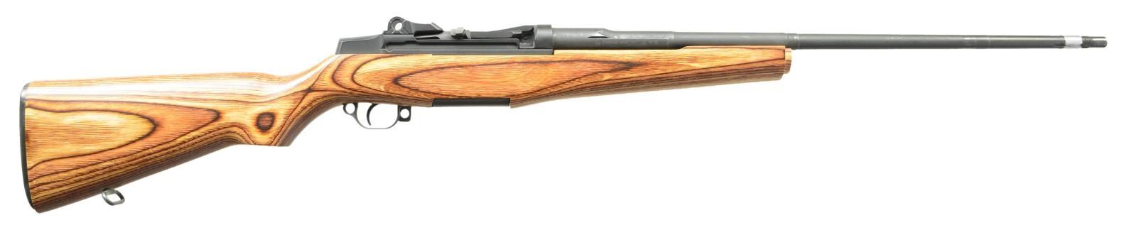 Cal. 30-06. S #4367848. Bbl. 24" Danish VAR marked w/ 12-59 date. Parts gun w/ Springfield receiver, laminated aftermarket stock, both laminated aftermarket handguards, USGI trigger assembly, buttplate & USGI bolt. No other parts present. Top buttplate screw is protruding outward & won't move inward. CONDITION: stock set shows light handling marks. Metal retains 90% gray arsenal parkerized finish w/ scattered light silvering. Good plus bore w/ minor frosting. (22-2649/MJC). MODERN. $300-500.